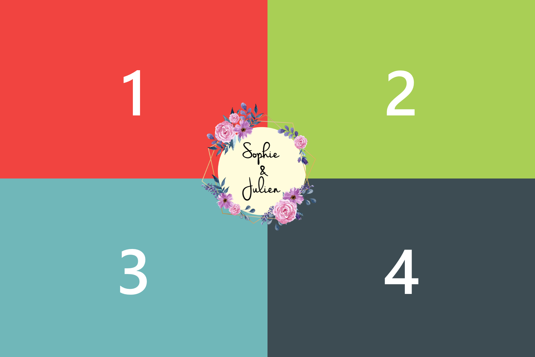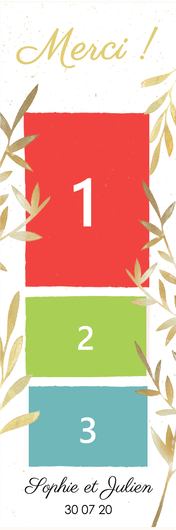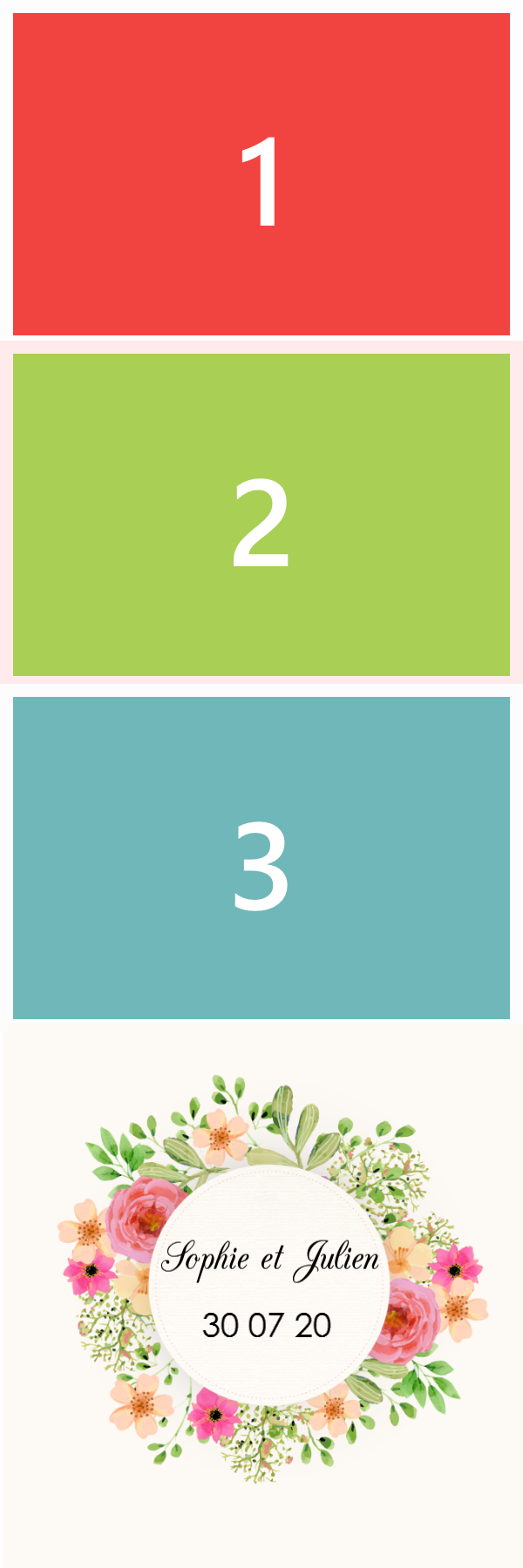 Choisissez parmi 35 modèles (templates) à personnaliser : de 1 à 4 photos, logo personnalisable, date, prénoms …