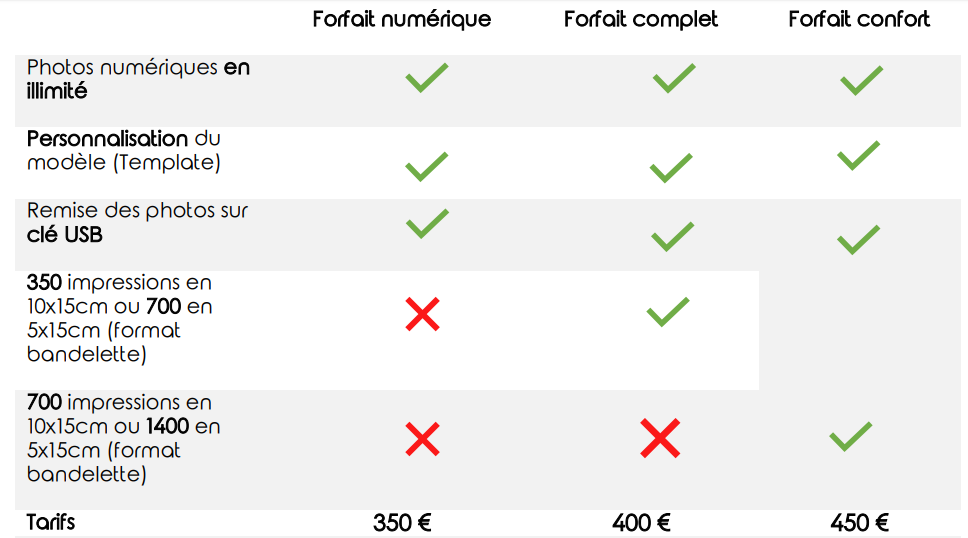 Pour s’adapter à tous les budgets et à tous les événements, vous avez le choix entre trois forfaits :
